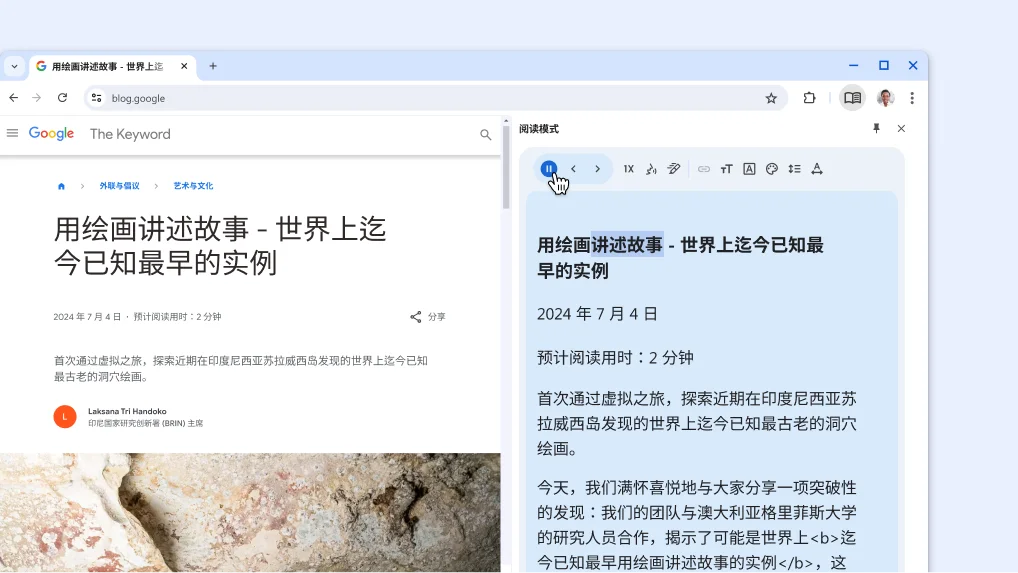 现在,Google Chrome 浏览器可以大声朗读网页内容。它会突出显示网页上的字词,帮助你跟随朗读进度。大声朗读功能最适合新闻报道、文章甚至 PDF 文件之类的内容。