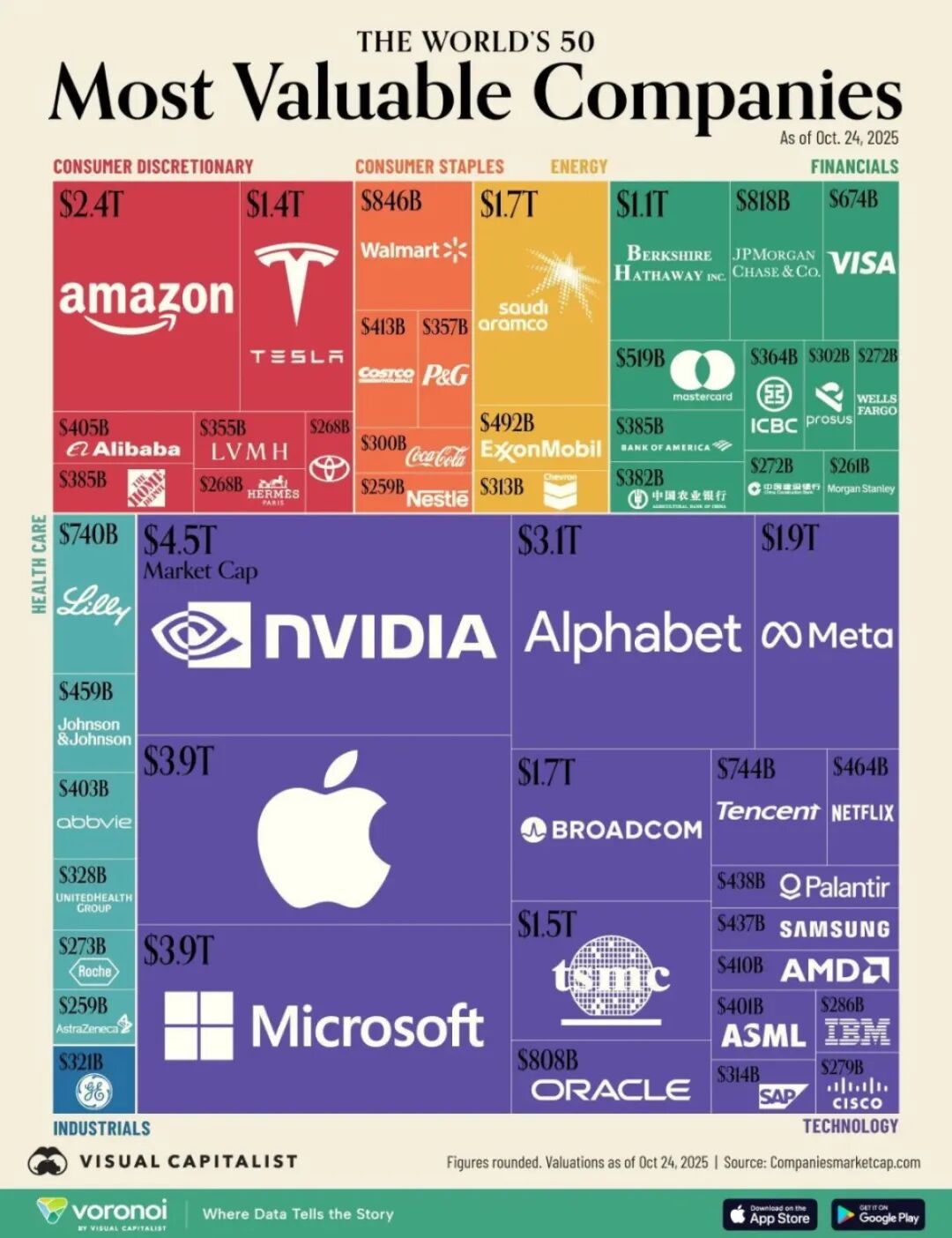此前不久,该公司首席执行官黄仁勋在华盛顿特区举行的GTC大会上发表主题演讲,宣布获得价值5000亿美元的人工智能芯片订单,并计划为美国政府建造七台超级计算机。就在三个月前,英伟达的市值刚刚在7月份突破4万亿美元大关,市值超越苹果和微软等科技巨头,但也引发了人们对人工智能投资泡沫的持续担忧。