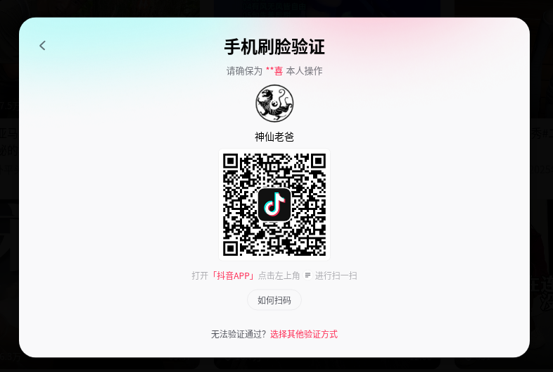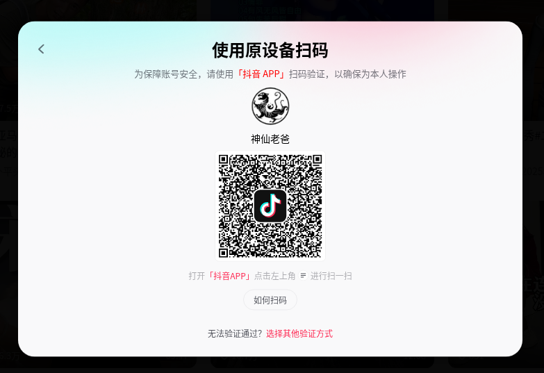 再看“使用原设备扫码”,仍然是需要使用 抖音APP 扫码验证,我只有再次放弃。
