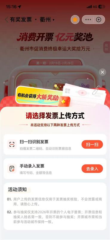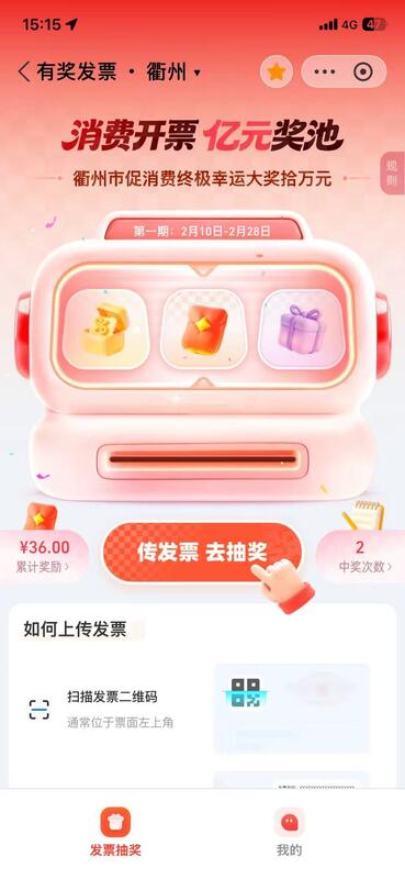 原来,大家参加的是财政部、商务部、国家税务总局开展的有奖发票活动,我们市成为全国50个试点城市之一,获中央资金近亿元用于活动开展,活动时间截止2026年7月31日。