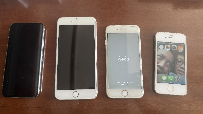 之前买新手机时,旧手机一般都用了5年左右,官网都不给置换了,所以换下来后就放在家里。昨天妻子心血来潮,说要把旧手机给卖了,省得占地方,反正也不会再用她了。想想也是这个理,就把要淘汰的 iPhone 4S、iPhone 6S、 iPhone 6 Plus、iPhone X四部手机照片发给一位维修手机的朋友,让他估一下能卖多少钱。